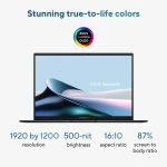 | Display | 14.0-inch, WUXGA (1920 x 1200) OLED 16:10 aspect ratio, 0.2ms response time, 60Hz refresh rate, 400nits, 500nits HDR peak brightness, 100% DCI-P3 color gamut, 1,000,000:1, VESA CERTIFIED Display HDR True Black 500, 1.07 billion colors, Glossy display, 70% less harmful blue light, TÜV Rheinland-certified, SGS Eye Care Display, Touch screen, (Screen-to-body ratio)87%, With stylus support |